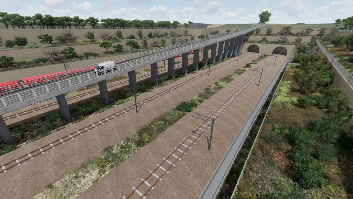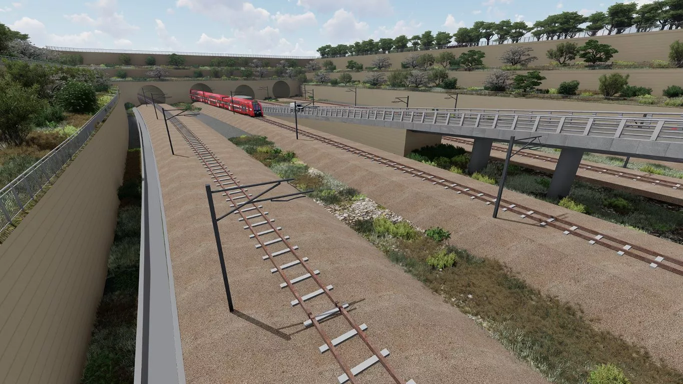 Planning railways, trains, and light rail, planning a splitters array and platforms in train stations. Planning supportive systems for railways (grade separations, access roads, parking lots in stations, drainage, etc.)